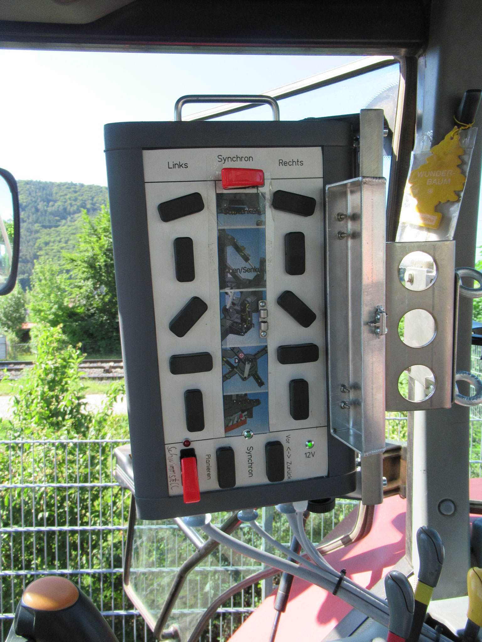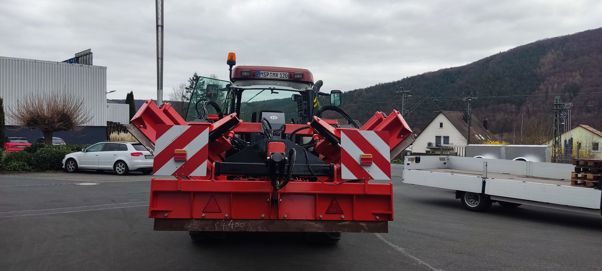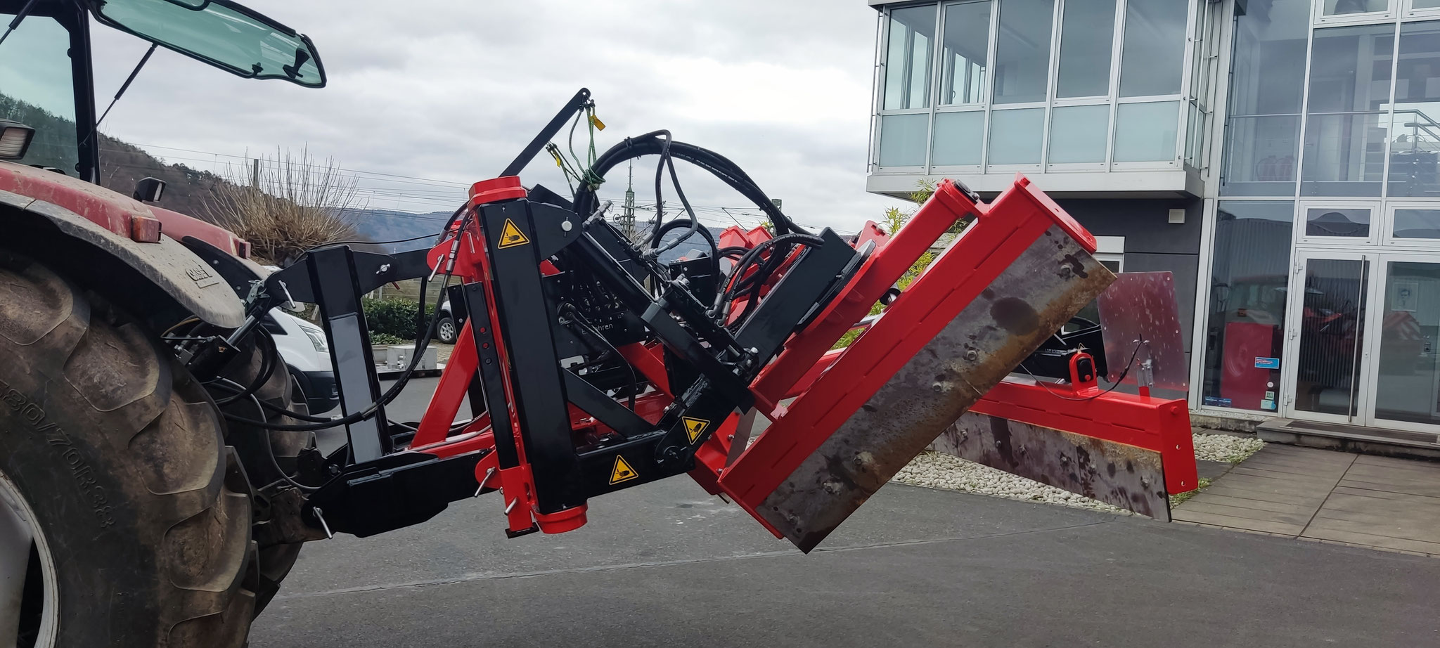 Hier hat man dann die Möglichkeit die beiden äußeren Arme schwimmend zu fahren, wobei das Gerät dann am Schlepper in der EHR gefahren wird. In diesem Modi arbeiten die Arme dann nur mit ihrem Eigengewicht von ca 300kg und „folgen“ dem Weg.