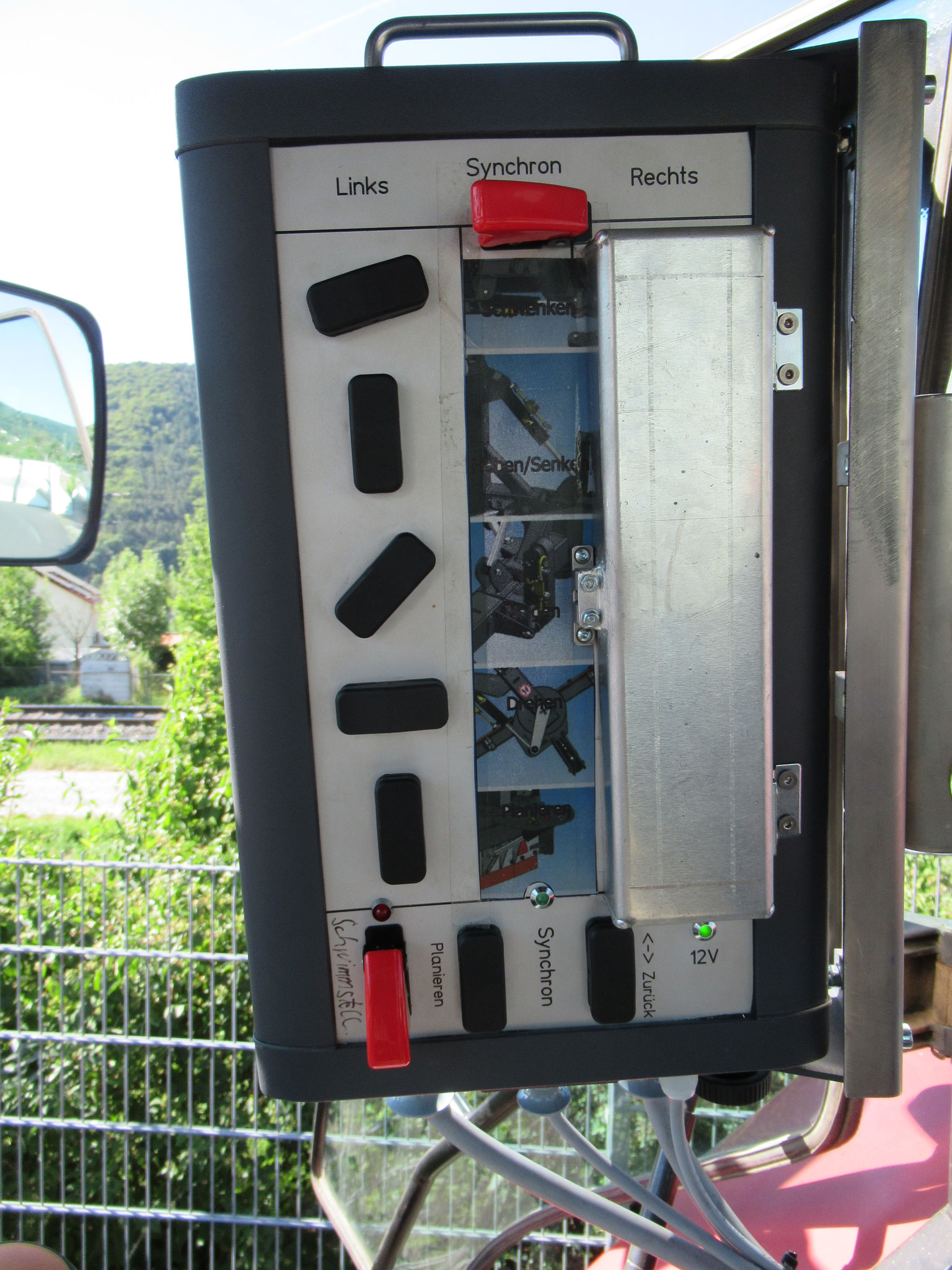 Es besteht auch die Möglichkeit, das Mittlere Schild nach vorne zu fahren, so dass es zusammen mit den äußeren Schildern einen Kasten bildet in dem sich Material sammeln kann.